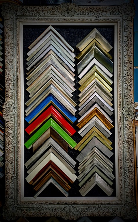 Für die Beratung stehen uns hunderte von Rahmenmustern, Passepartoutmustern und verschiedene Bilderglas Muster zur Verfügung.