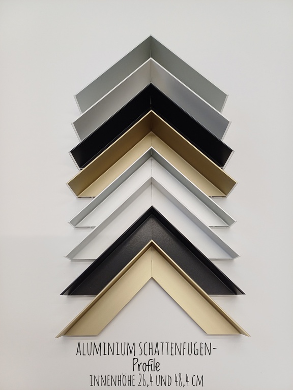 Schattenfugenrahmen in vielen unterschiedlichen Designs und das Aufspannen Ihrer Leinwandbilder auf Keilrahmen bieten wir ebenfalls an.