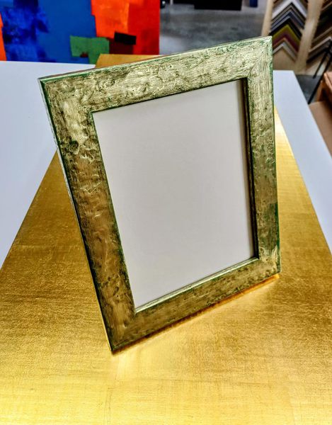 Fotorahmen 15x20 cm mit Grüngold veredelt.
