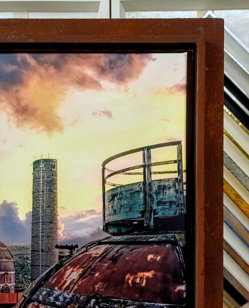 Handgefertigte Echtrost-Bilderrahmen für Industrie- Motive