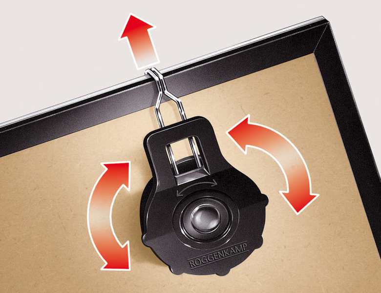 Die Rückseite ist mit stabilen Spannfedern, Drehfedern oder Klappmechaniken ausgestattet. Aufhängung sowohl im Hoch- als auch im Querformat möglich.